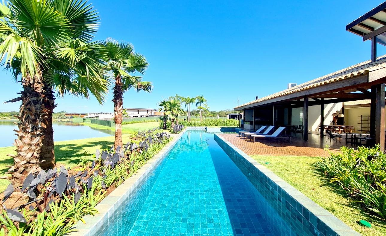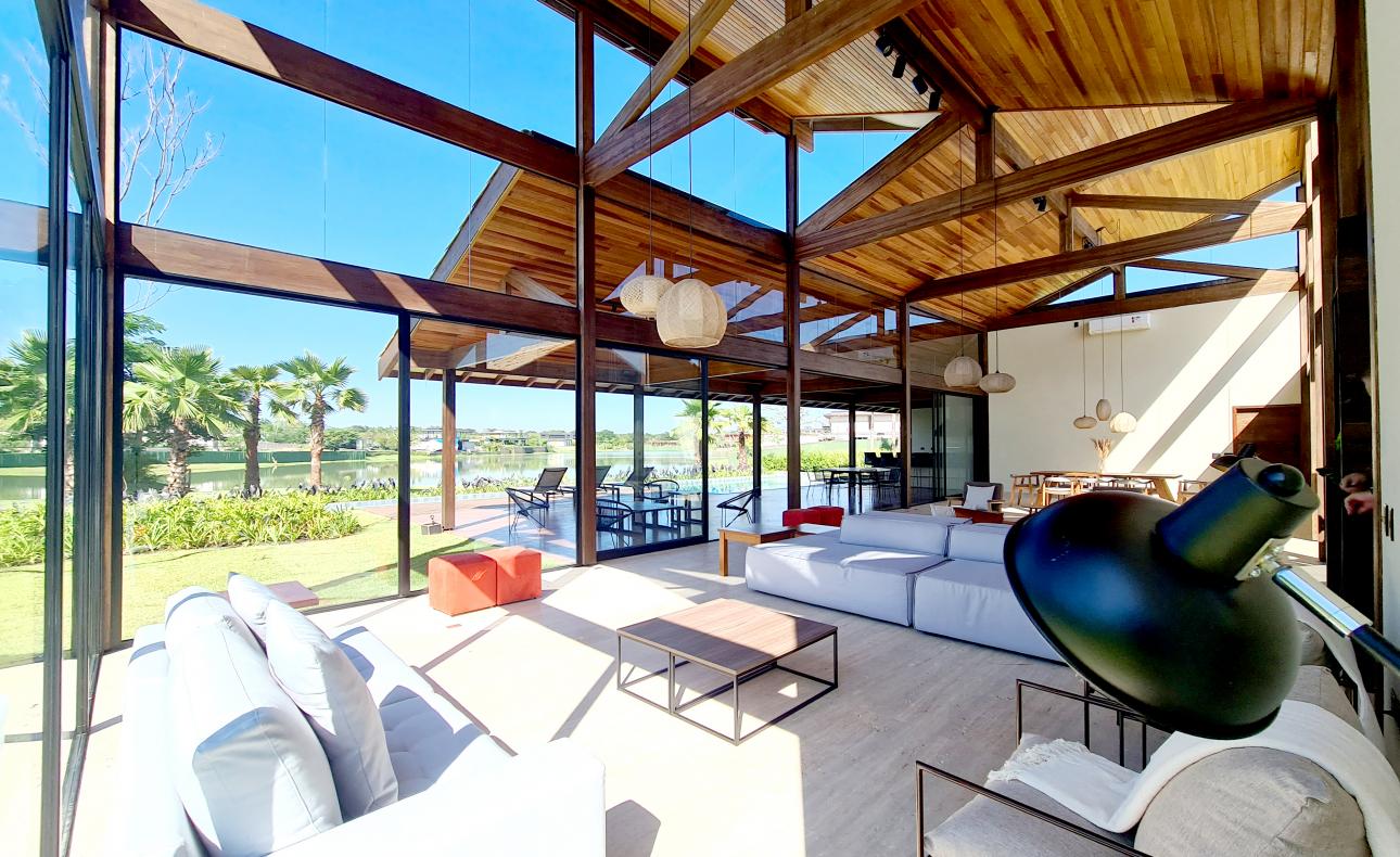 Essa propriedade é uma das casas mais incríveis da FBV. Totalmente térrea, possui muita luminosidade trazida pelos painéis de vidros. Além de contar com espaços generosos e integrados, possui vista exuberante para a mata nativa e para o lago. Este imóvel conta com 3300 m2 de terreno e 950 m2 de construção. Dispõe de 7 suítes, sendo 1 master com 85 m², ampla sala com pé direito alto e escritório privativo.